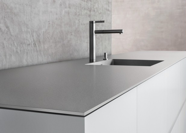 Mit der bahnbrechenden Materialinnovation Blanco Durinox eröffnen sich für Bauherren neue, außergewöhnliche Küchen-Designs mit exquisiten Edelstahl-Arbeitsplatten, die auch in punkto Pflege kompromisslos sind. Planern bietet das Programm der SteelArt-Arbeitsplatten mit jetzt drei Oberflächen – Durinox, Seidenglanz und Seidenmatt – eine bislang unerreichte Material- und Gestaltungsvielfalt.