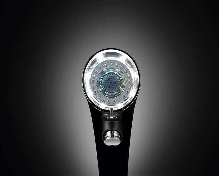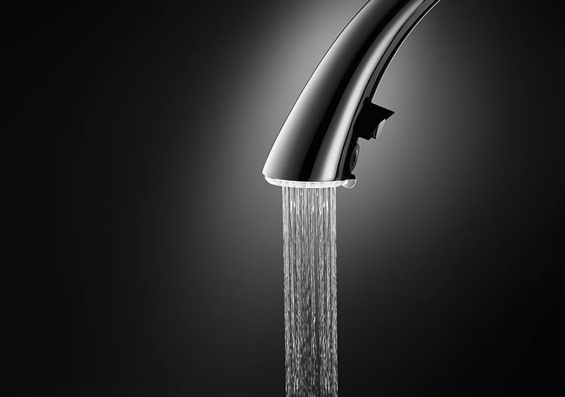 Lumière LED LUMINAQUA® LED s’allume et s’éteint au moyen d’une touche à effleurement ON/OFF intégrée dans la douchette extractible. Extinction automatique après 30 minutes. LED: durable et économique Longue durée de vie, consommation minimale d’électricité – la consommation ne représente qu’environ 1/5 par rapport aux ampoules conventionnelles.