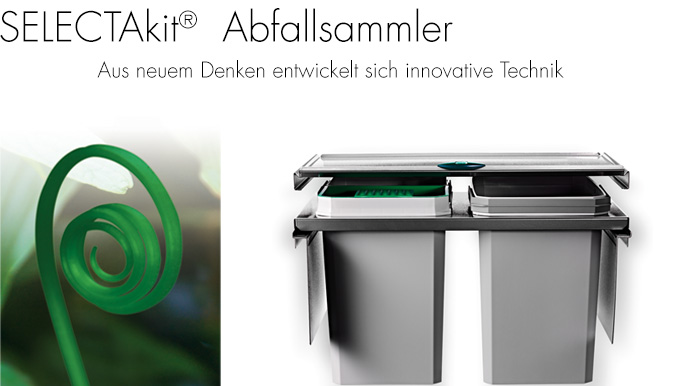 Aus neuem Denken entwickelt sich innovative Technik. Heute steht ein umfassendes Angebot durchdachter, funktioneller und richtungsweisender Abfalltrennbehälter und Sammelsysteme zur Auswahl. Es erleichtert dem Anwender nicht nur ökologisch orientierten Umgang mit Abfällen und Wertstoffen, sondern verdeutlicht durch kreative Neu und Weiterentwicklungen bewährter Systeme, wie richtungsweisend und aktuell aktiver Umweltschutz ist.