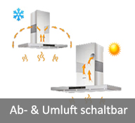 Alle Dunstabzugshauben (oder doch fast alle) können sowohl im Abluftbetrieb als auch im Umluftbetrieb eingesetzt werden, denn jede Haube ist eine Umlufthaube, wenn man einen Kohlefilter einsetzt und die gereinigte Luft wieder in den Küchenraum zurückleitet und jede Haube ist eine Ablufthaube, wenn man einen Abluftkanal anschließt und die belastete Luft nach draußen leitet. Es hängt also einzig und allein von dem von Ihnen eingesetzten Zubehör ab, ob die Haube eine Abluft- oder Umlufthaube ist.